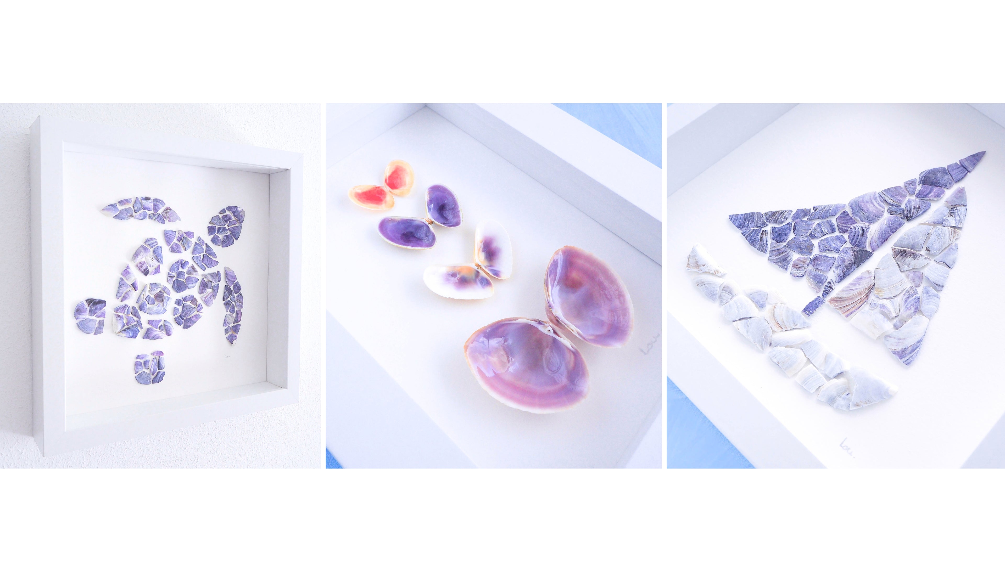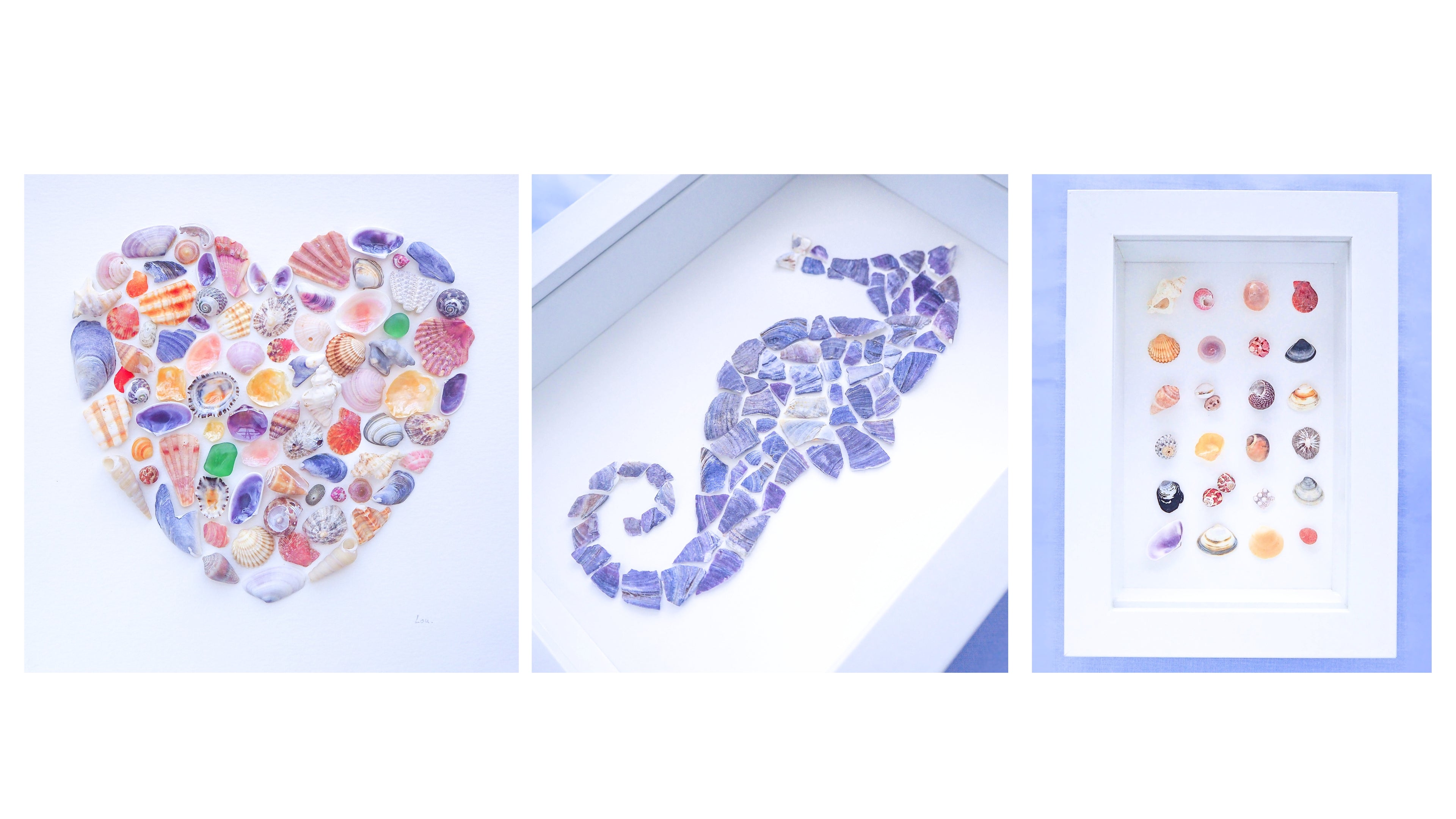SEA BY LOU creates unique, one-of-a-kind and handmade artworks and jewelry using carefully collected sea treasures.