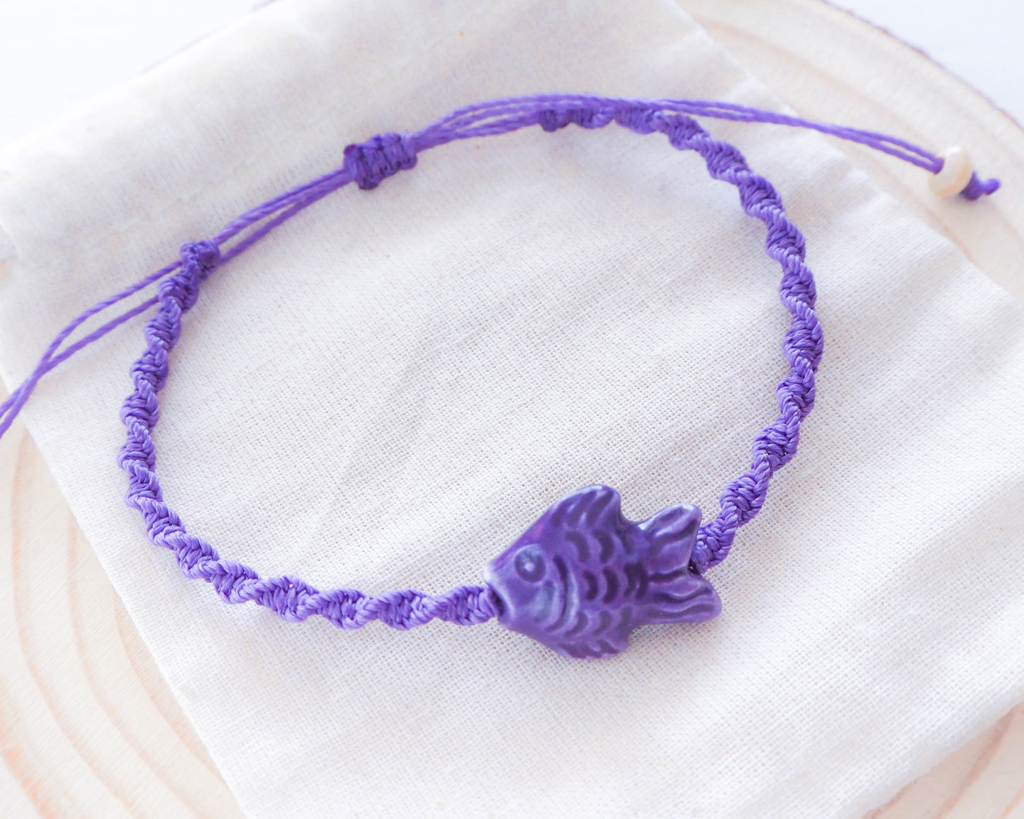 🌿 Natural Elegance: The handcrafted braided band of this bracelet complements the fish beautifully. The combination of the purple fish and the high-quality braided design makes this bracelet an ideal accessory for both casual and formal occasions.