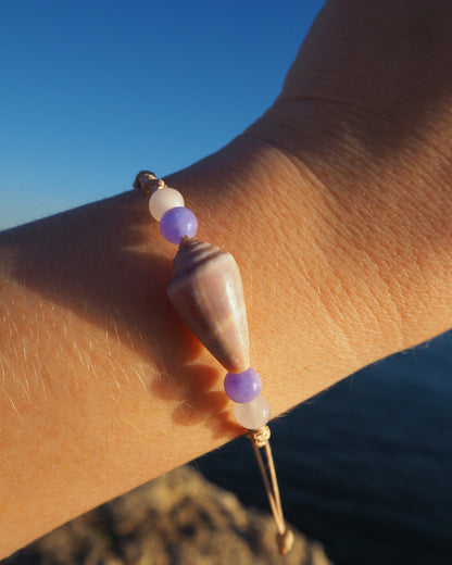 The centerpiece of this bracelet is an unique Mediterranean Cone Shell, handpicked from the beautiful shores of Portugal.