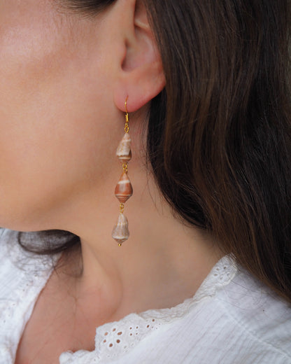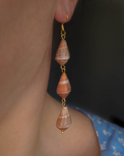 These unique Coastal Drop Dangle Shell earrings are adorned with 3 elegant Mediterranean Cone Shells on each side