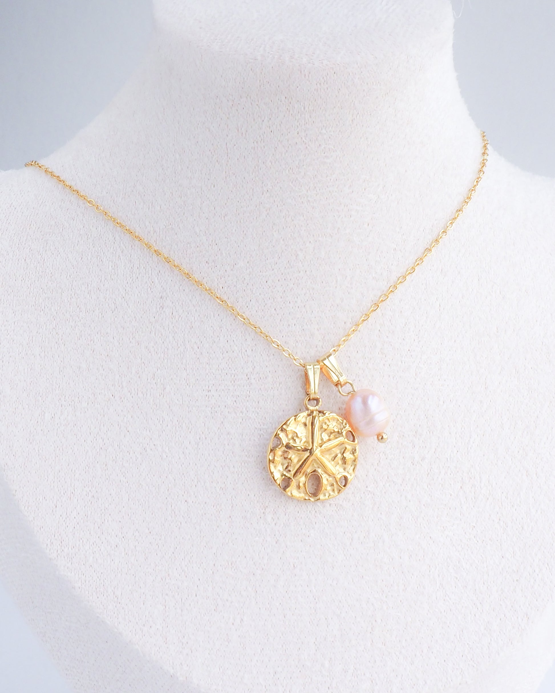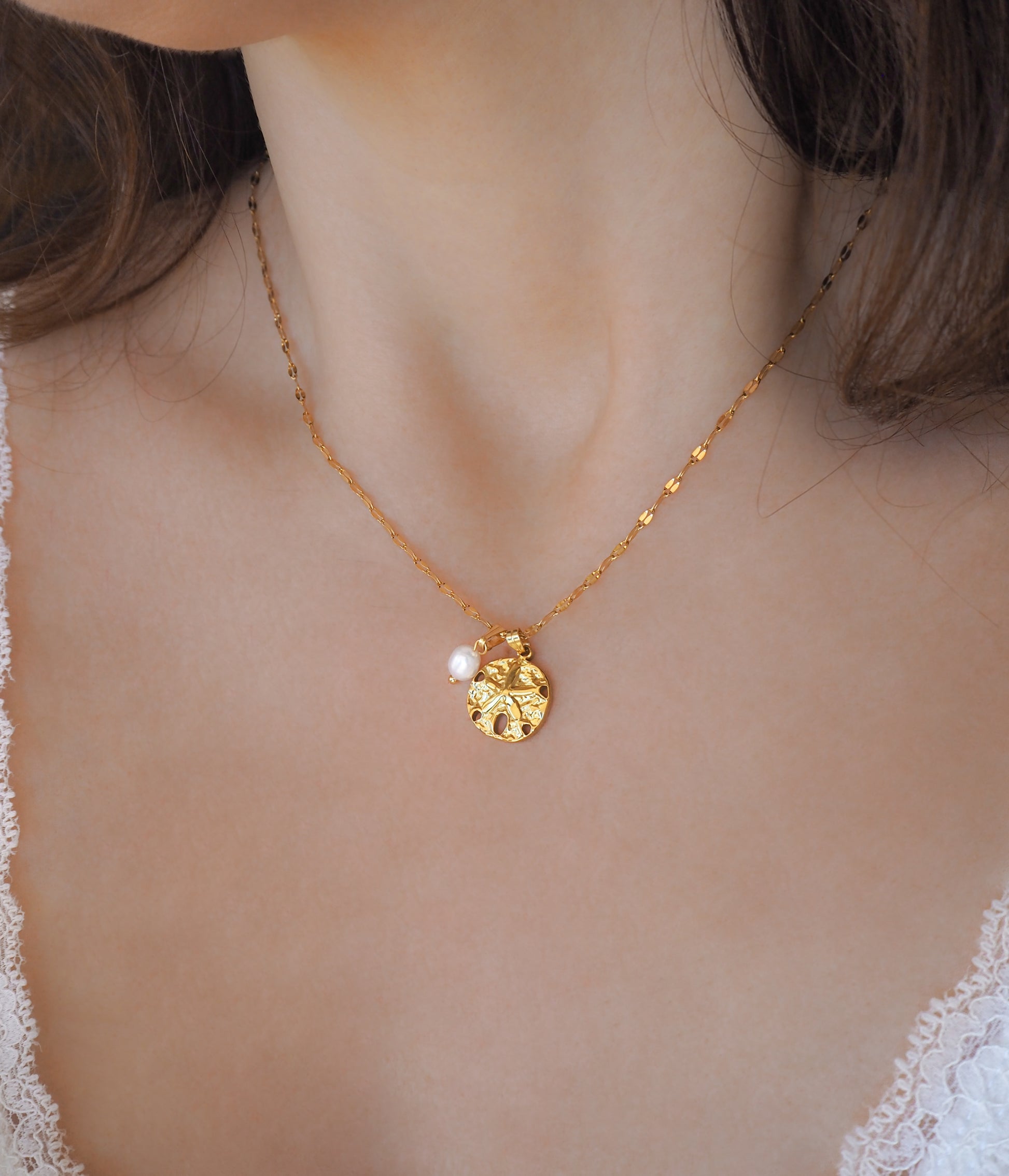 SAND DOLLAR PEARL NECKLACE ~ Gold