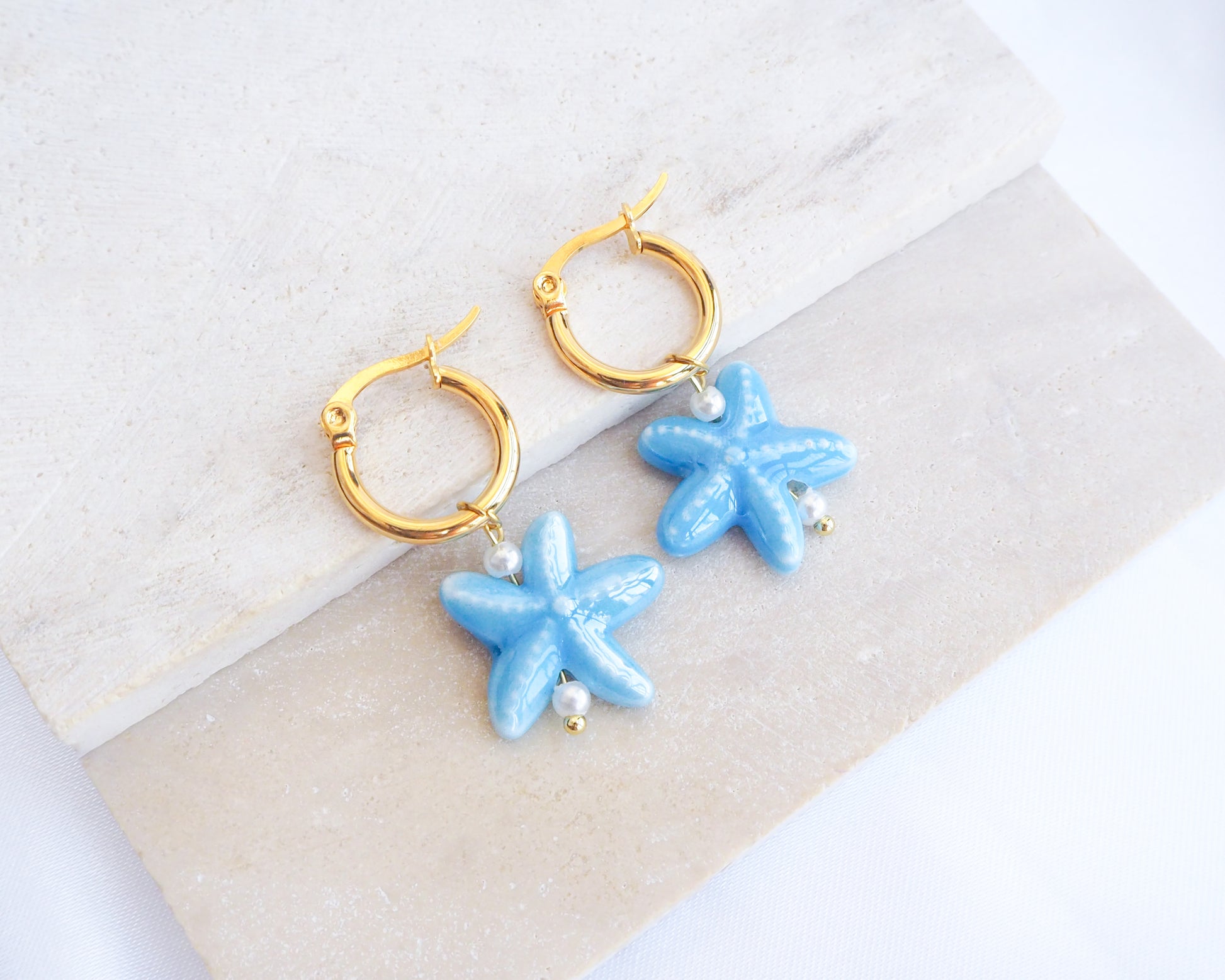 SEA STAR CERAMIC EARRINGS ~ Mid Blue