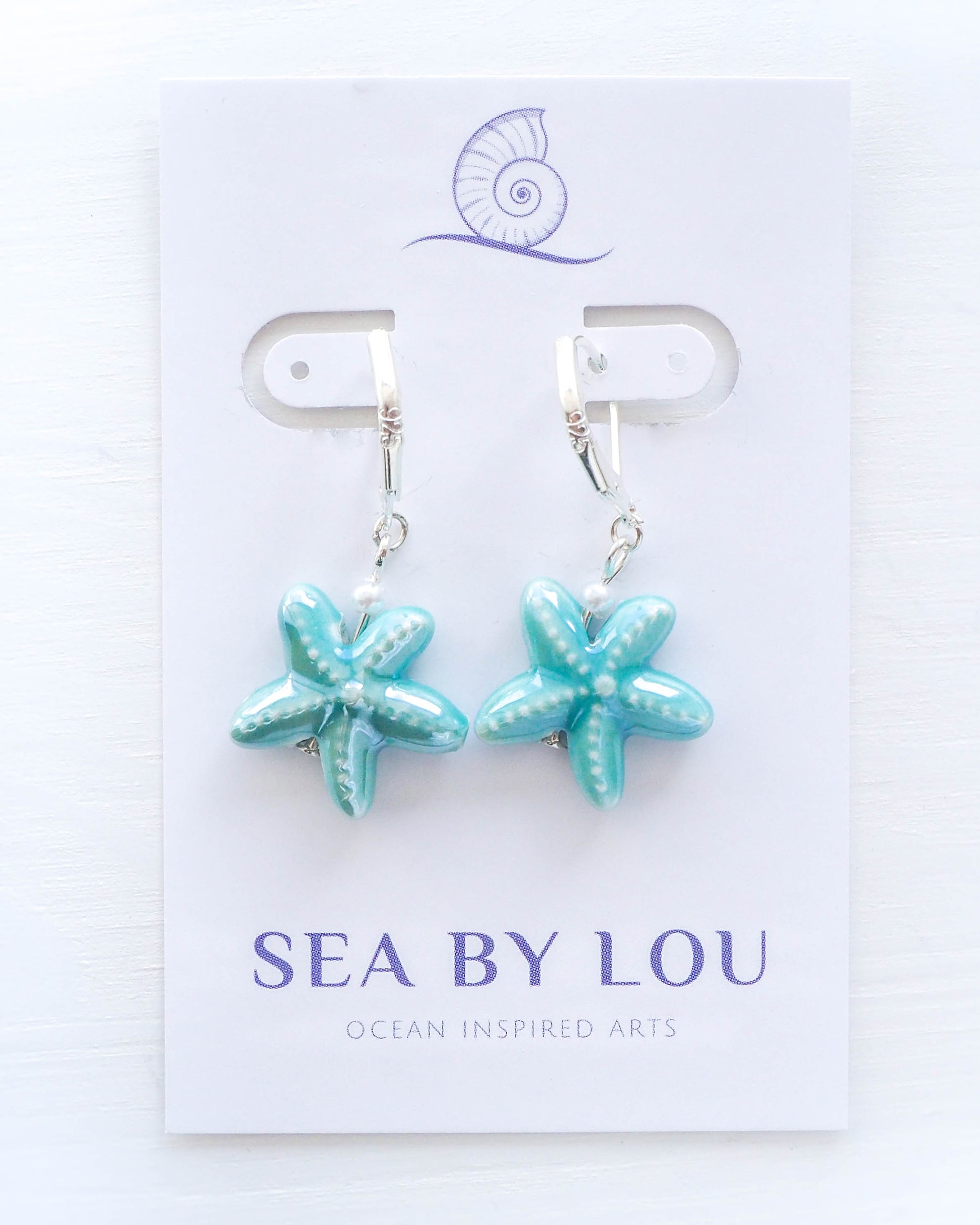 SEA STAR CERAMIC EARRINGS ~ Turquoise