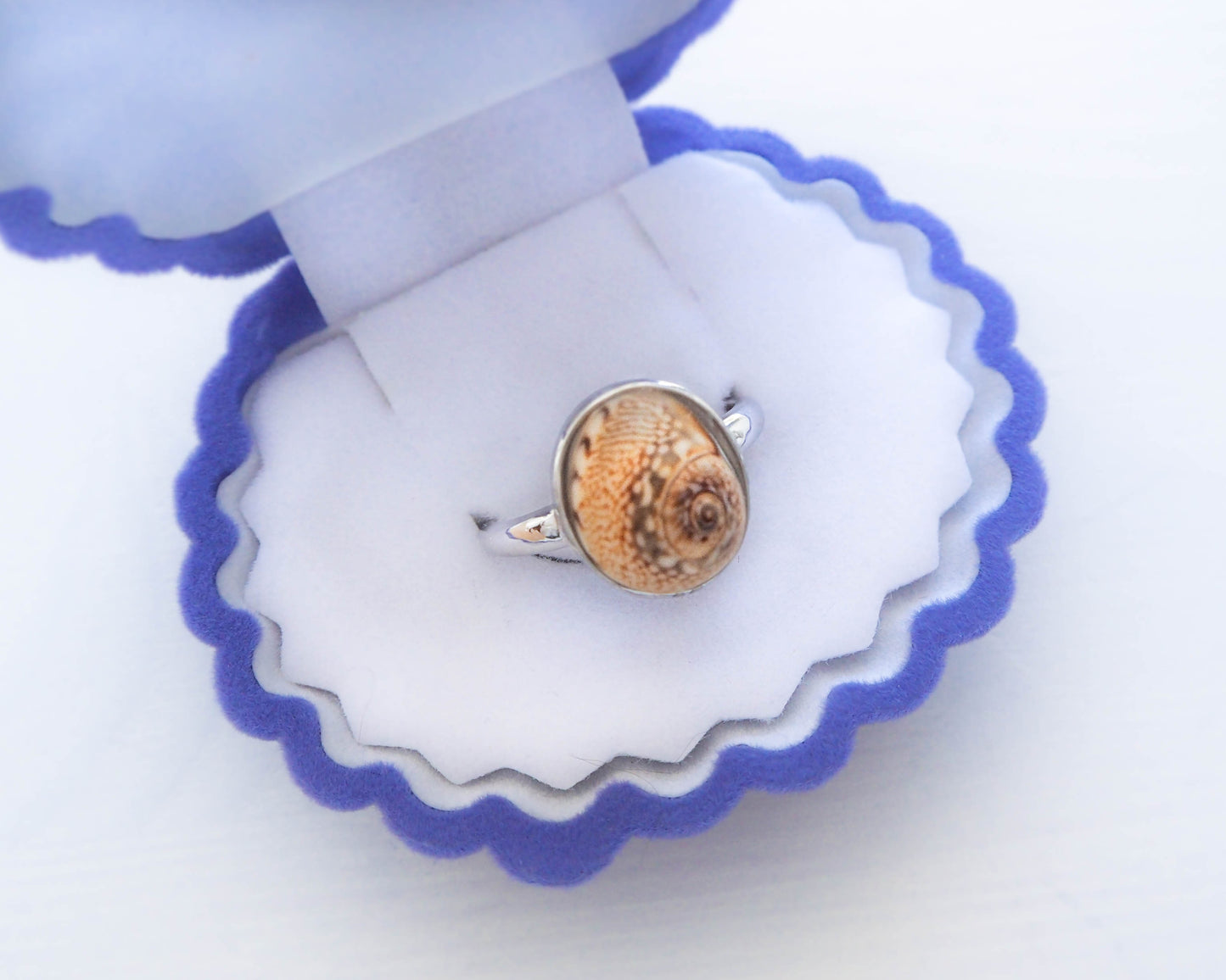 🐚 Inspired by the Ocean: The Tritia Neritea Shell, found on the beach of the Portugal is meticulously placed in the heart of this adjustable ring, becomes a focal point, capturing the symphony of the sea with its delicate patterns and timeless beauty. Each shell tells a story of the tides and brings a piece of the ocean to your fingertips.