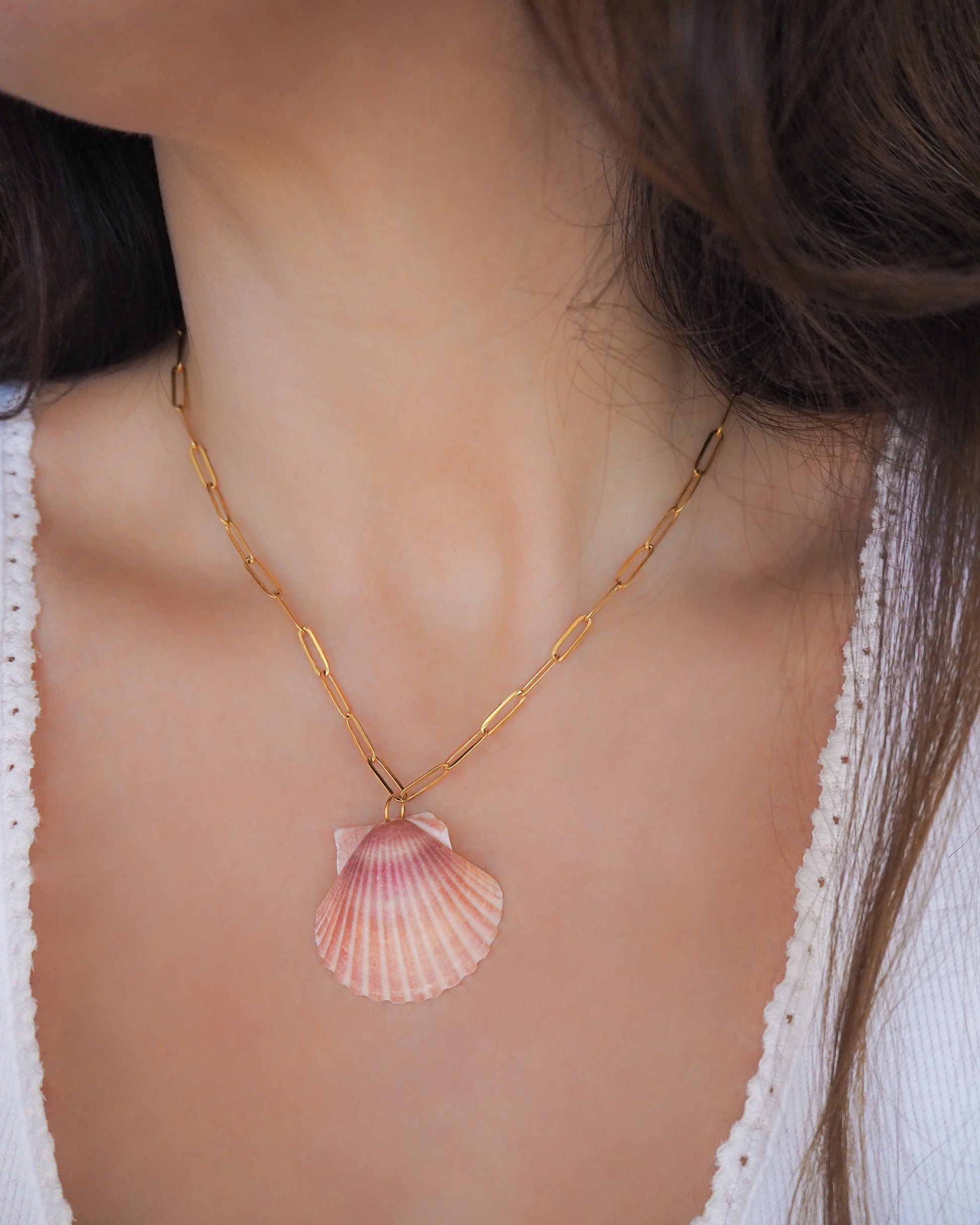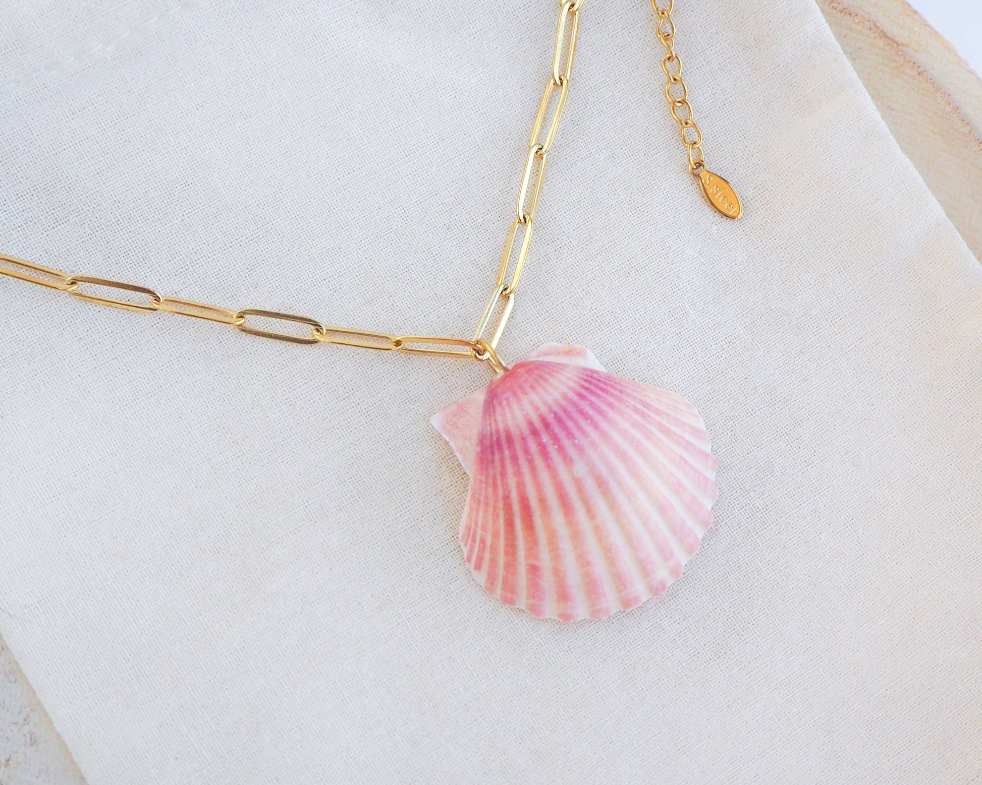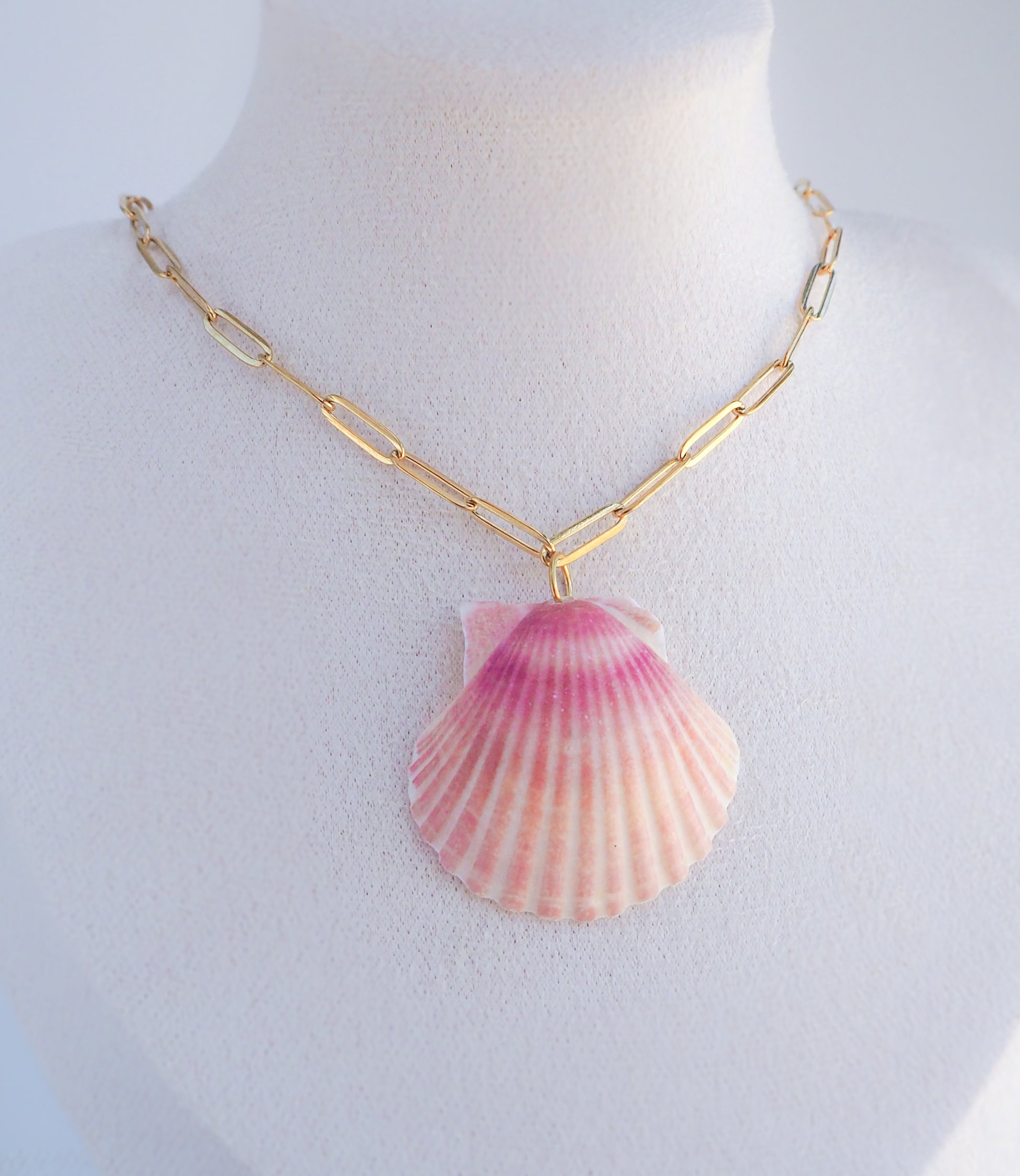 SEASHELL NECKLACE ~ Big Pink Scallop Shell