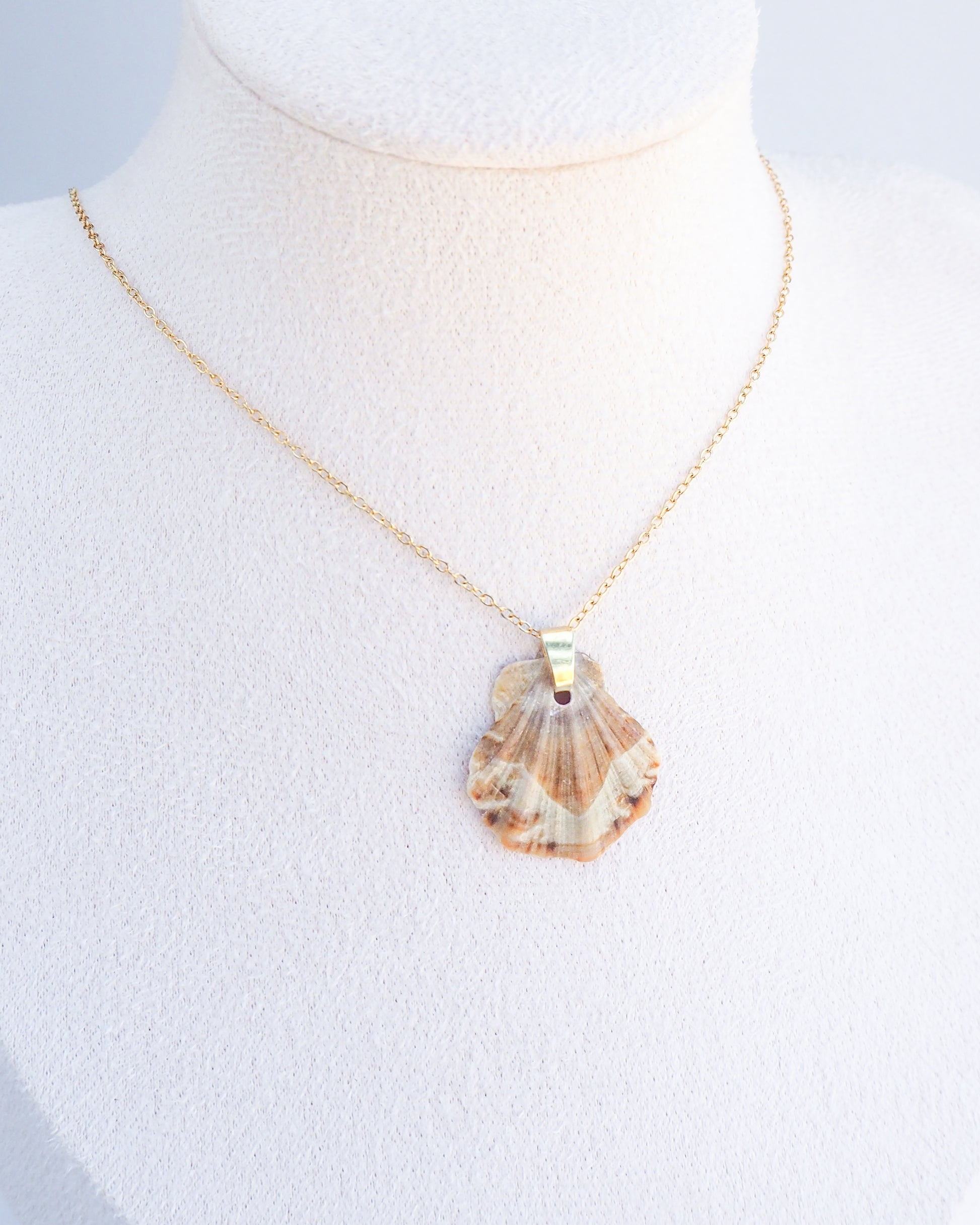 SEASHELL NECKLACE ~ Brown Moth Butterfly Scallop Shell