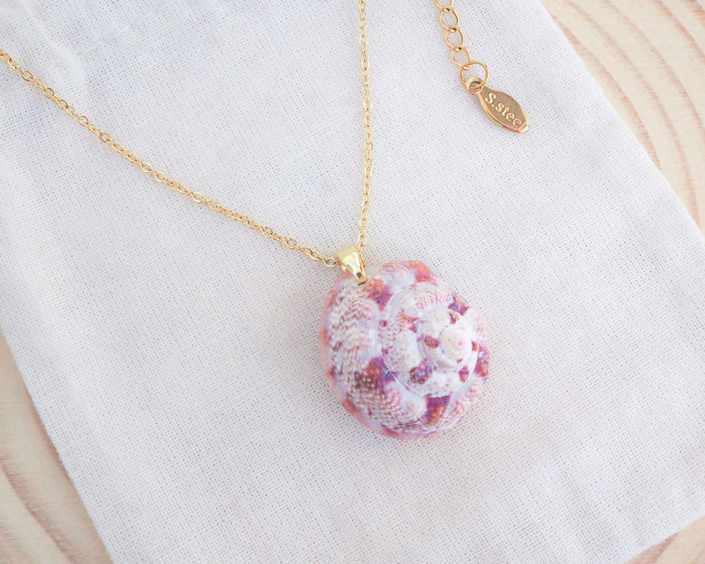 The unique hues and pattern of this Magus Top Shell are a testament to the rich coastal palette found along Portugal's beaches and complements the shimmering gold stainless steel necklace chain.✨