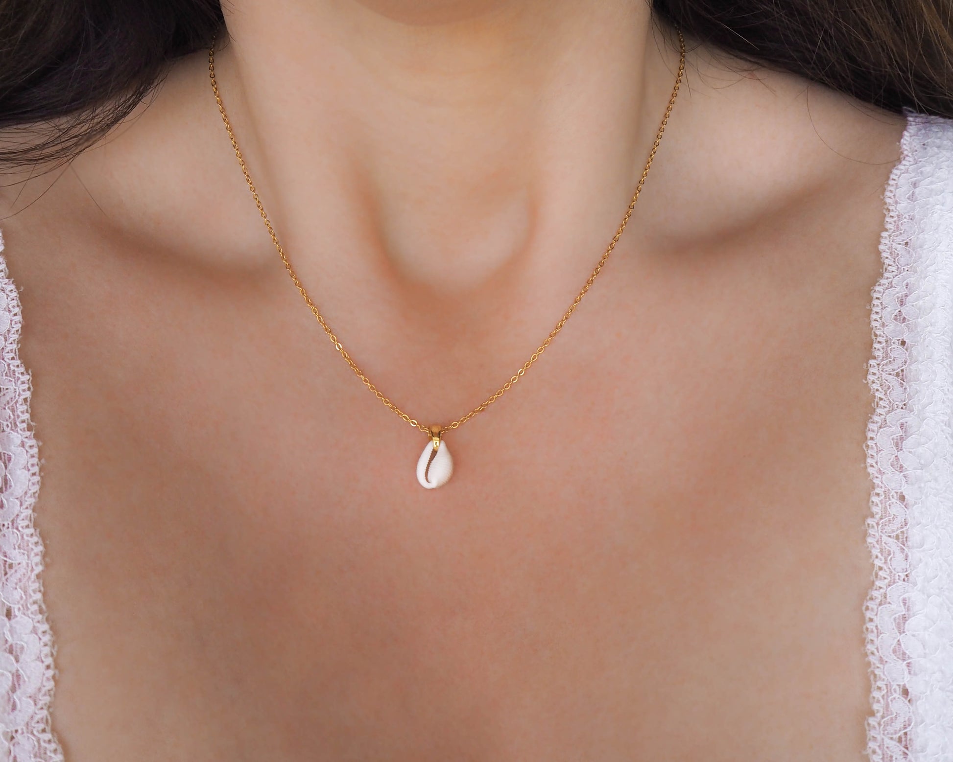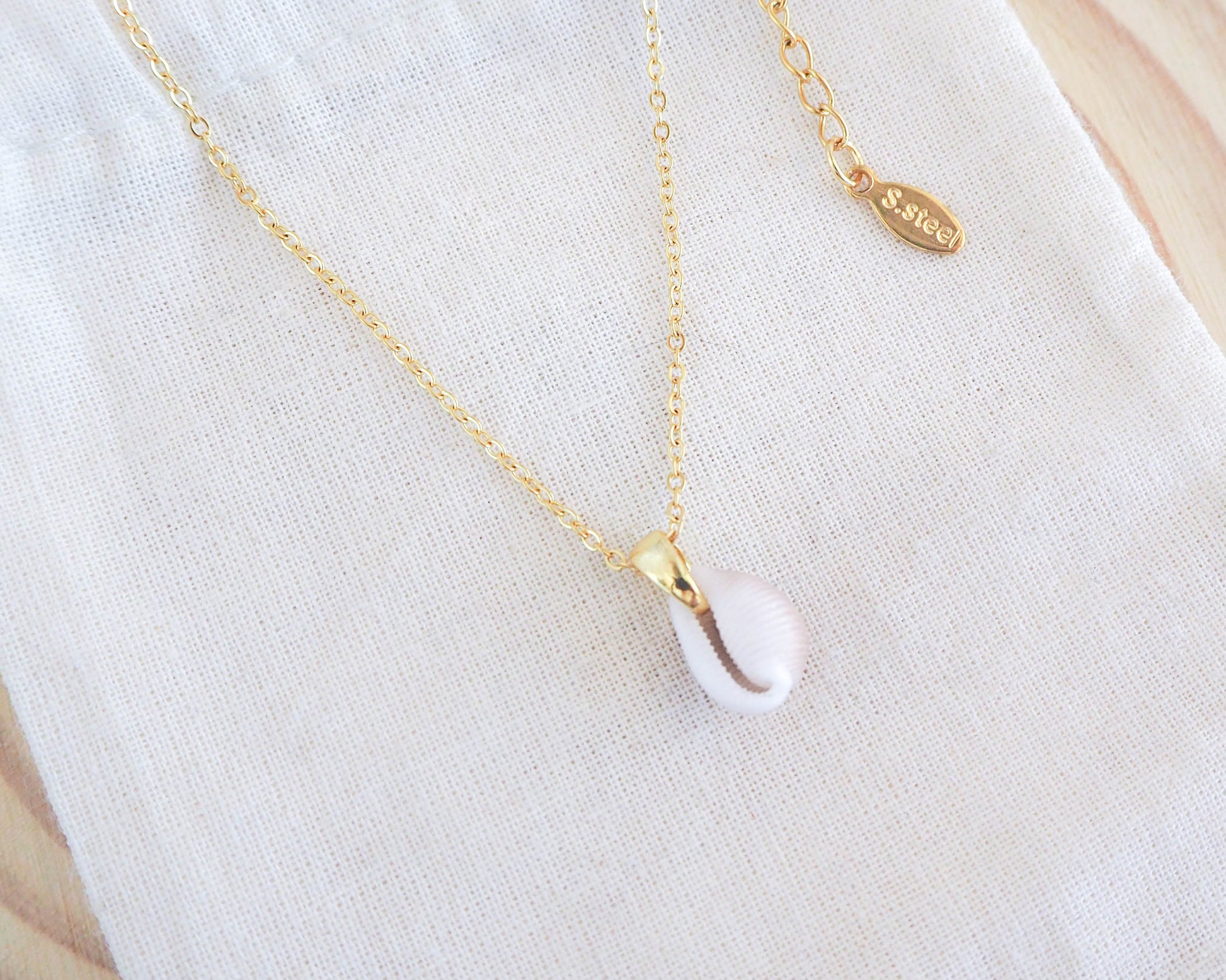The stunning shell adds extra coastal vibe to this necklace combined with a touch of elegance from the gold stainless steel chain.