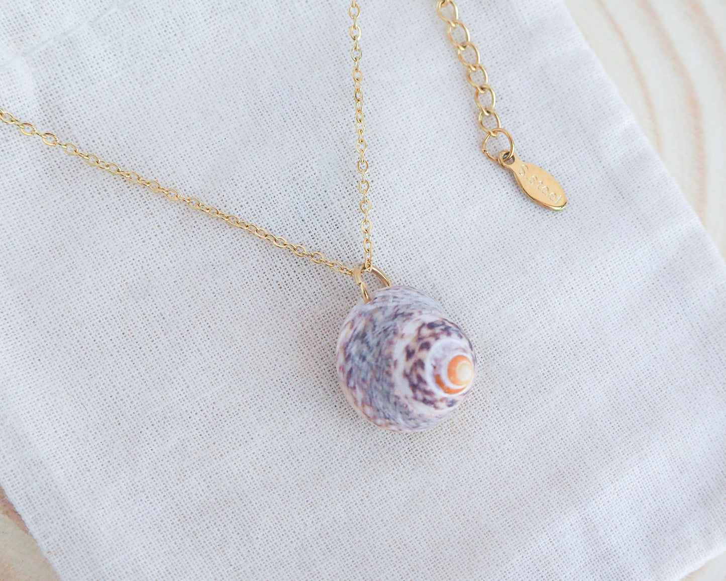 This necklace is adorned with a stunning light Lined Top Shell found in Algarve, Portugal. 🐚