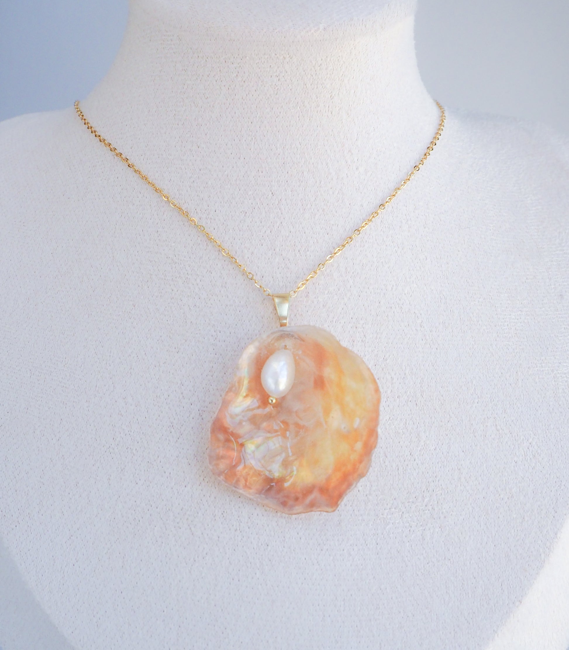 SEASHELL NECKLACE ~ Gold Pearl Rainbow Orange Jingle Shell