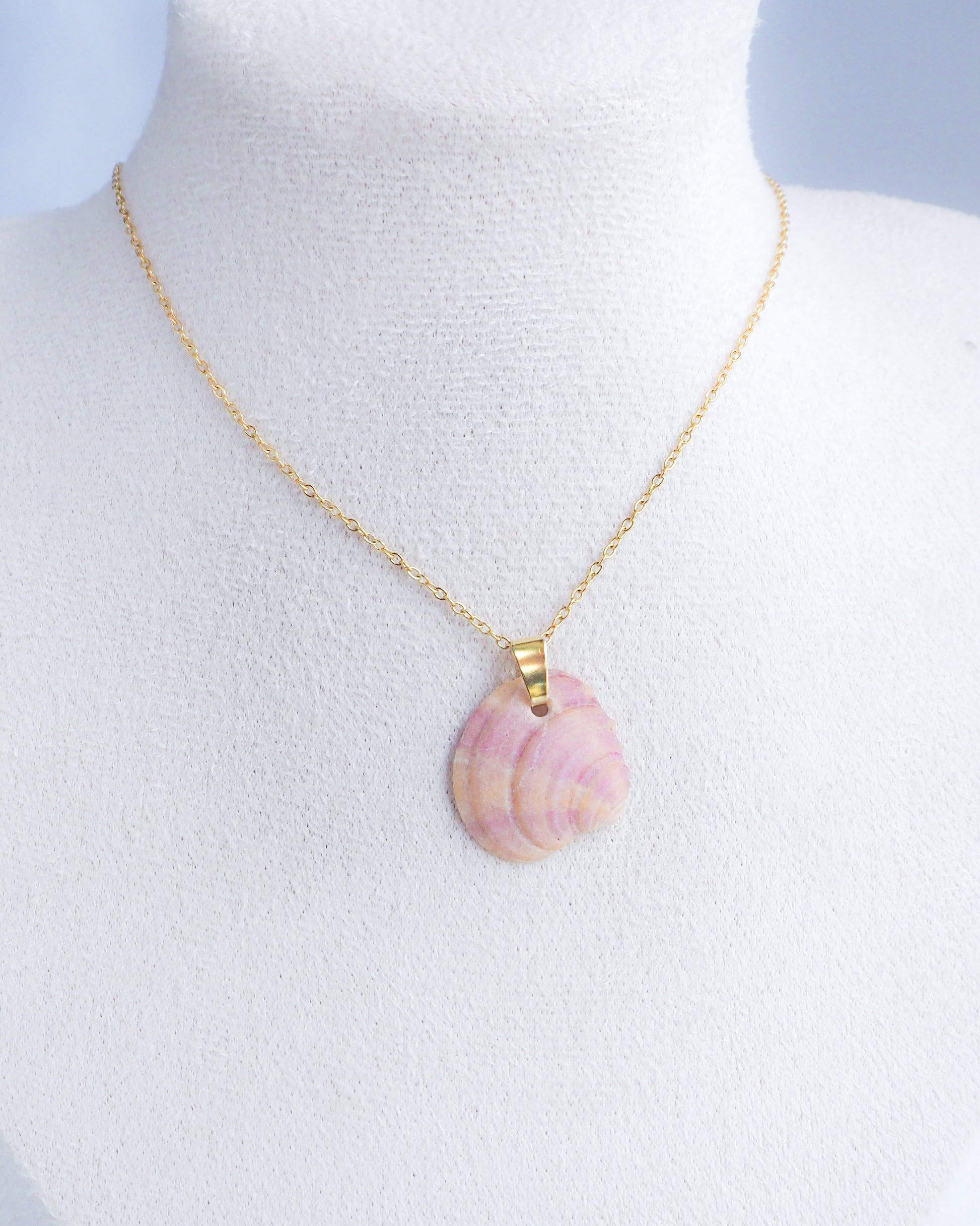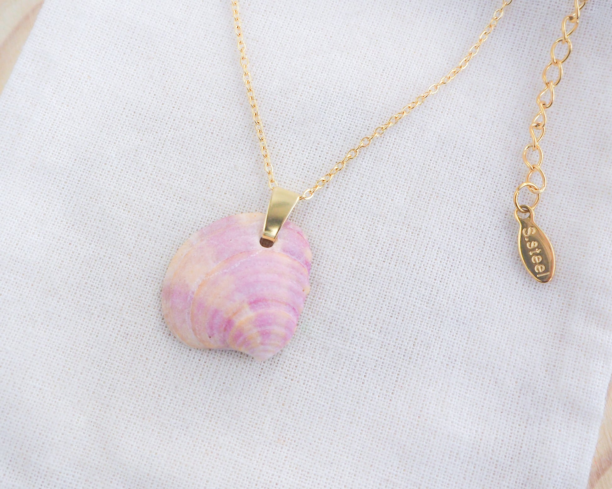 SEASHELL NECKLACE ~ Gold Pink Orange Venus Shell