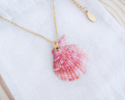 SEASHELL NECKLACE ~ Gold Pink Scallop Shell