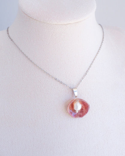 SEASHELL NECKLACE ~ Silver Pearl Fuchsia Jingle Shell II