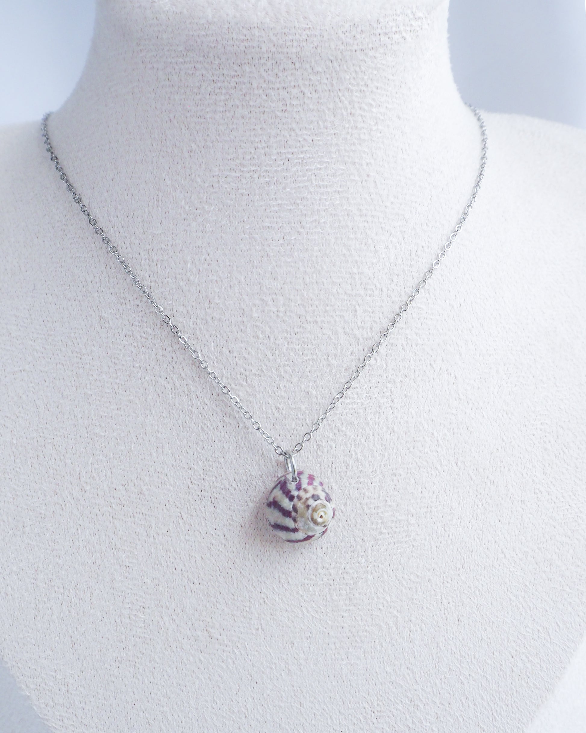 SEASHELL NECKLACE ~ Silver Purple Striped Top Shell