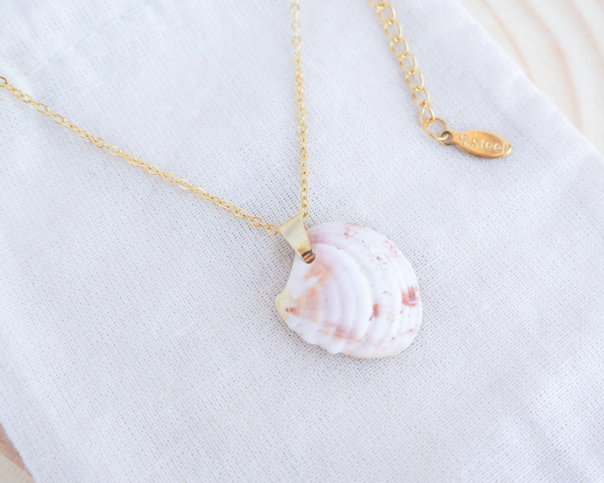 The stunning shell adds extra coastal sweetness to this necklace combined with a touch of elegance from the gold stainless steel chain.