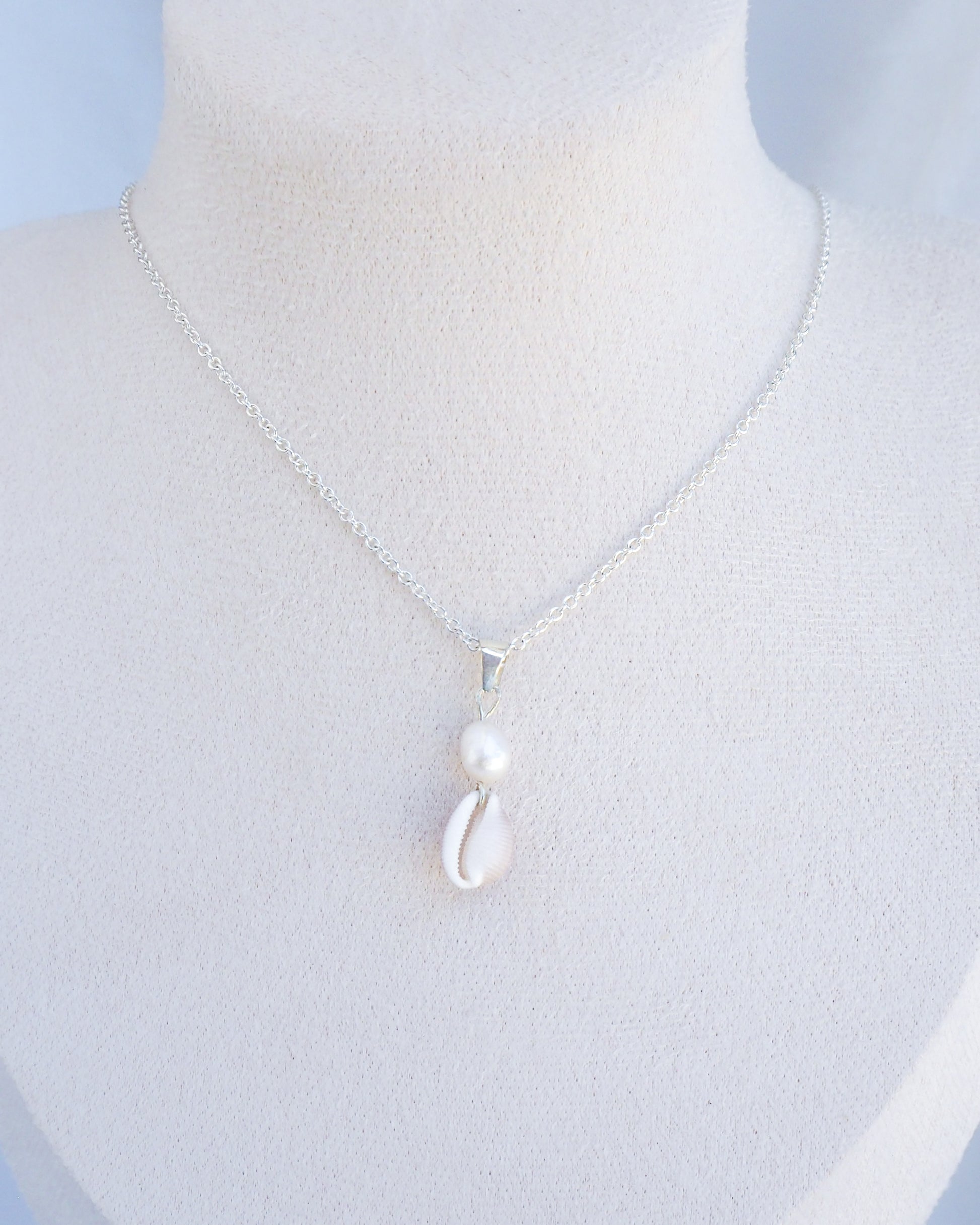 This Silver Cowrie Shell Pearl necklace combines the beauty of our ocean with a touch of elegance, featuring a real European Cowrie Shell and a ivory color freshwater pearl, that symbolize purity and love.🐚✨